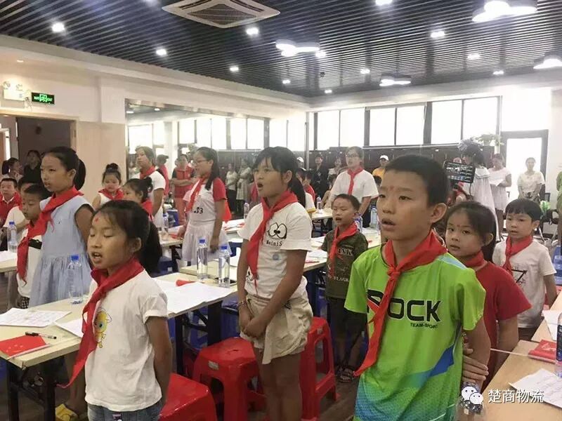 讲解和教唱《中国少年先锋队队歌》 这次活动的同学们来自不同的中小年级,最高年级为即将进入到初三年级的同学,最低为即将进入到小学读一年级的同学。针对这样年龄和年级悬殊较大而又会在一起进行学习和互动的一个特殊群体,湖北商会秘书处考虑周全,准备了小国旗、红领巾、少先队徽章、五角星头贴等学习、互动和激励道具,准备了像有《两只老虎》《一闪一闪亮晶晶》《外婆的澎湖湾》《真的爱你》《外面的世界》《红星歌》《中国少年先锋队队歌》等吉他弹奏、弹唱等歌曲,让同学们回答哪些歌是什么歌名,识别哪些歌是儿歌、流行歌和红歌等。